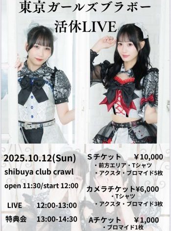 Sチケット¥10,000/カメラチケット¥6,000/Aチケット¥1,000/当日券¥1,500
