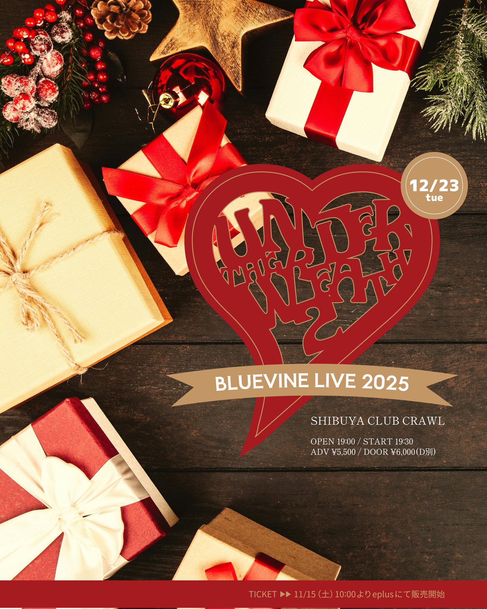 2025.12.23 BLUEVINE LIVE 2025 「UNDER THE WREATH 2」 live 2025.12.23TUE OPEN 19:00 / START 19:30 BLUEVINE LIVE 2025 「UNDER THE WREATH 2」 BLUEVINE Adv ¥5,500Door ¥6,000Drink ¥600 / 1 orderプレイガイドhttps://eplus.jp/sf/detail/4433650001-P0030001P021001 ※会場付近たむろ禁止 ※再入場禁止 ※飲食物持ち込み厳禁 Post navigation ← esora uma 1st LIVE 「エソラモノクローム」 ハロー晴れ模様 〜チキンよりソラリス!ケーキよりステイチューン!〜 →