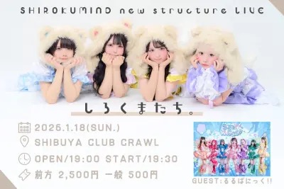 2026.01.18 SHIROKUMIND new structure LIVE live 2026.1.18SUN OPEN 19:00 / START 19:30 SHIROKUMIND new structure LIVE しろくまいんど/るるぱにっく!! 前方 ¥2,500円/一般 ¥500円 Drink ¥600 / 1 orderプレイガイドhttps://ticketdive.com/event/newstructurelive ※会場付近たむろ禁止 ※再入場禁止 ※飲食物持ち込み厳禁 Post navigation ← 『Remix-to-G』 QOQ-キューオーキュー- vol.8 →