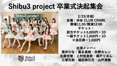 2026.02.23 Shibu3 project 卒業式決起集会 live 2026.2.23MON OPEN 11:30 / START 12:00 Shibu3 project 卒業式決起集会 Shibu3 project 前方チケット¥5,000円/一般チケット¥1,000円/当日券+¥1,000円 Drink ¥600 / 1 orderプレイガイドhttps://ticketdive.com/event/shibu3202602 ※会場付近たむろ禁止 ※再入場禁止 ※飲食物持ち込み厳禁 Post navigation ← 「コウサツ」 CLUB CRAWL pre.『Never Ending Music』 →