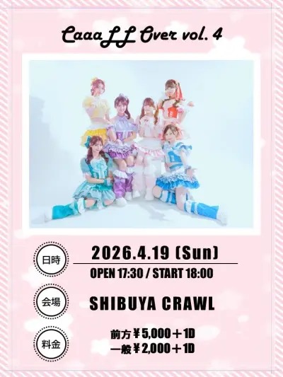 2026.04.19 AND CaaaLL定期公演 『CaaaLL Over vol.4』 live 2026.4.19SUN OPEN 17:30 / START 18:00 AND CaaaLL定期公演 『CaaaLL Over vol.4』 AND CaaaLL 前方¥5000/一般¥2000/当日¥1000 Drink ¥600 / 1 orderプレイガイドhttps://ticketdive.com/event/CaaaLLOver4 ※会場付近たむろ禁止 ※再入場禁止 ※飲食物持ち込み厳禁 Post navigation ← アルライト Presents “Be a Light vol.2”