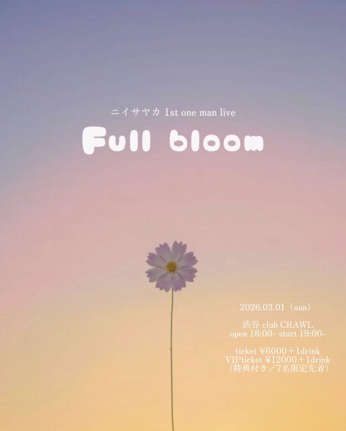 SCHEDULE 2月 3月 4月 3月のイベント数: 1件 live 2026.3.1SUN OPEN 18:00 / START 19:00 ニイサヤカ 1st one man live「Full bloom」 ニイサヤカ VIP ¥12,000/一般¥6000 Drink ¥600 / 1 orderプレイガイドhttps://t.livepocket.jp/e/w110k ※会場付近たむろ禁止 ※再入場禁止 ※飲食物持ち込み厳禁 2月 3月 4月
